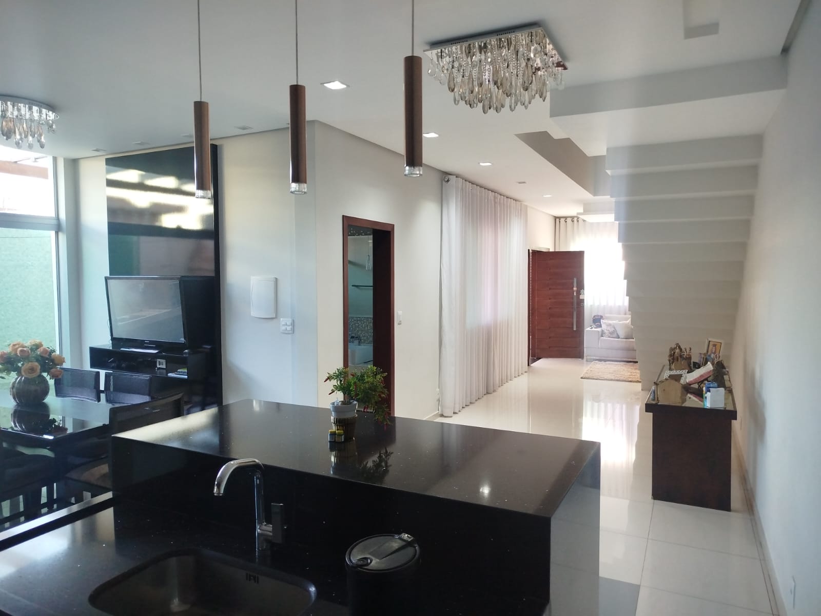 EXCELENTE CASA DE DOIS PAVIMENTOS – GARAGEM AMPLA, COZINHA COM ARMÁRIOS PLANEJADOS, SALA DE ESTAR, SALA DE TELEVISÃO, ÁREA DE SERVIÇO AMPLA, ESCADA COM CORRRIMÃO E PARAPEITO EM VIDRO, BANHEIROS COM BOX, SUÍTE COM BANHEIRA DE HIDROMASSAGEM, VARANDA AMPLA.